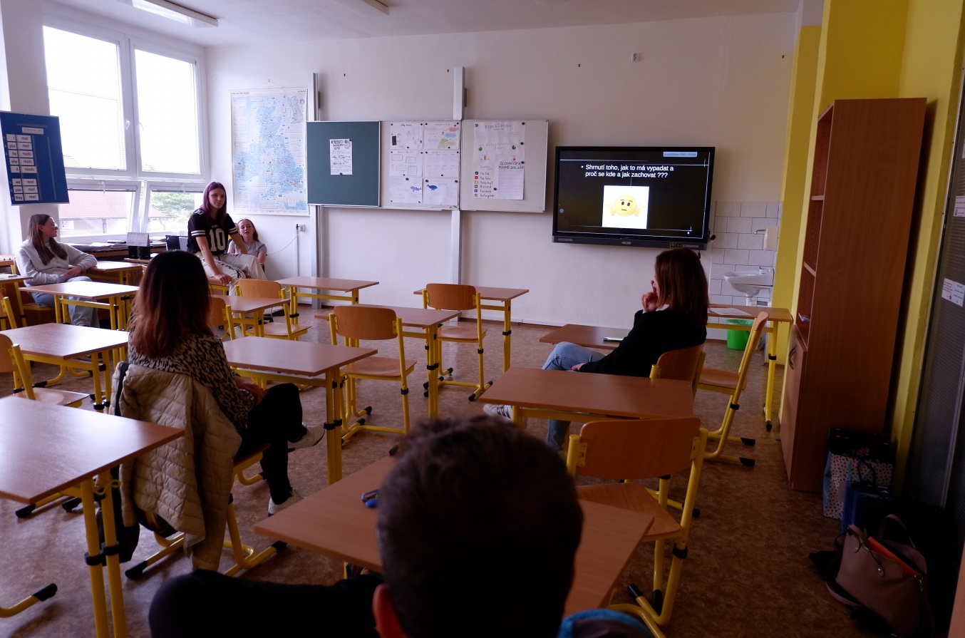 Žáci byli rozděleni do skupin podle ročníků a získali informace na téma Kyberšikana v souvislostech, Sexting, Kybergrooming a Sociální sítě.