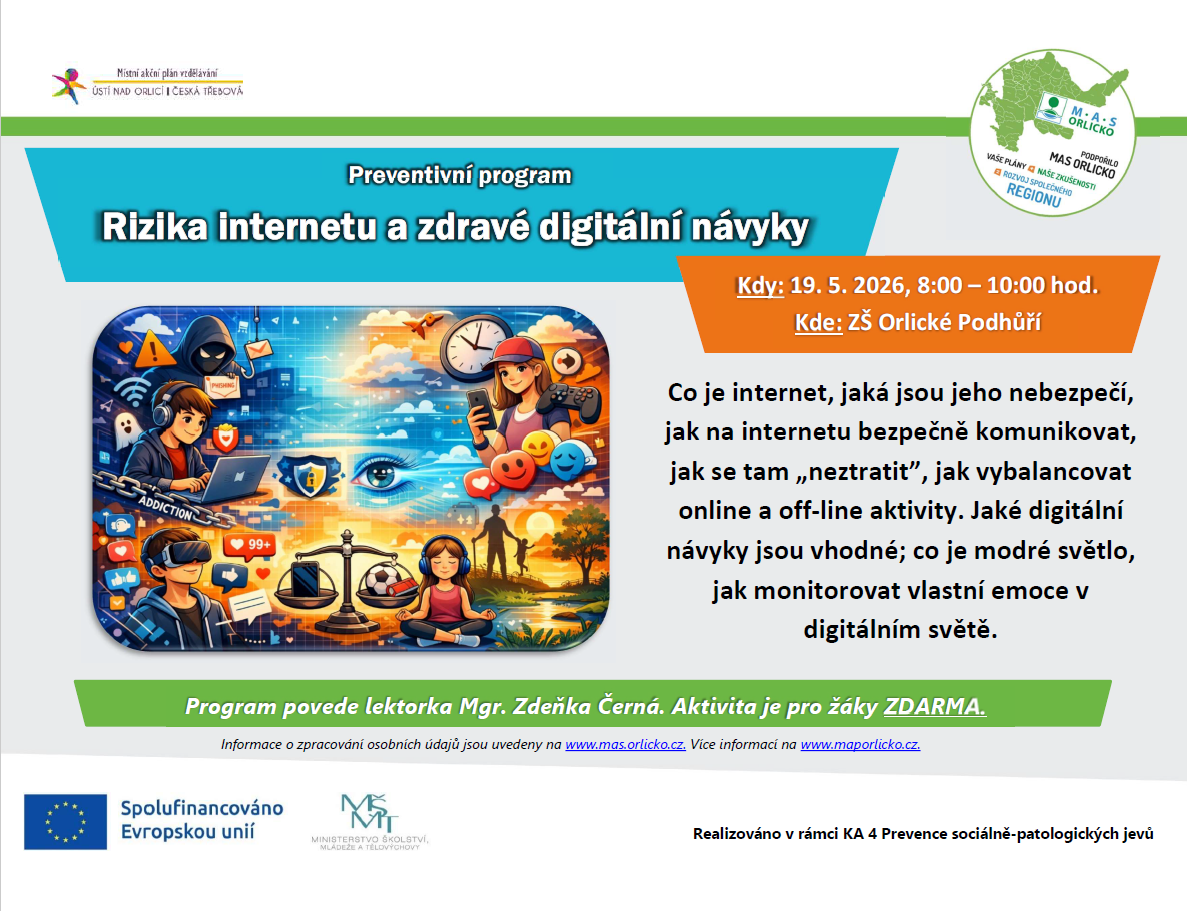 19.5.2025 proběhne preventivní program "Rizika internetu a zdravé digitální návyky" na ZŠ Orlické Podhůří
