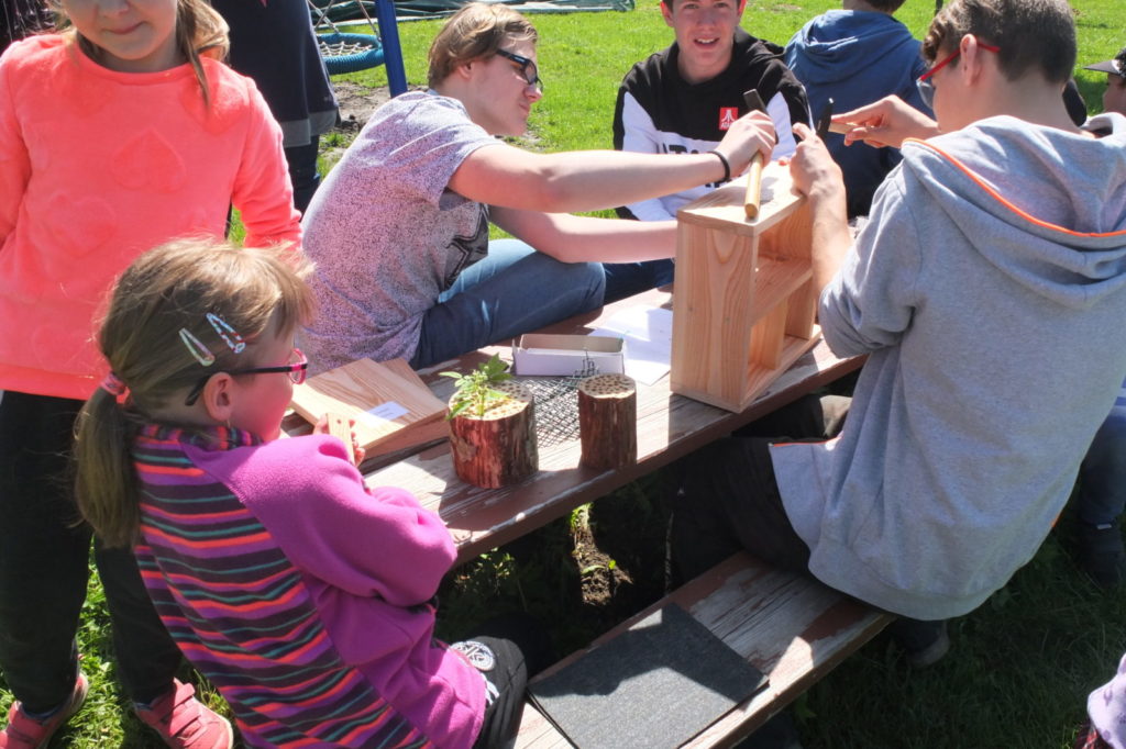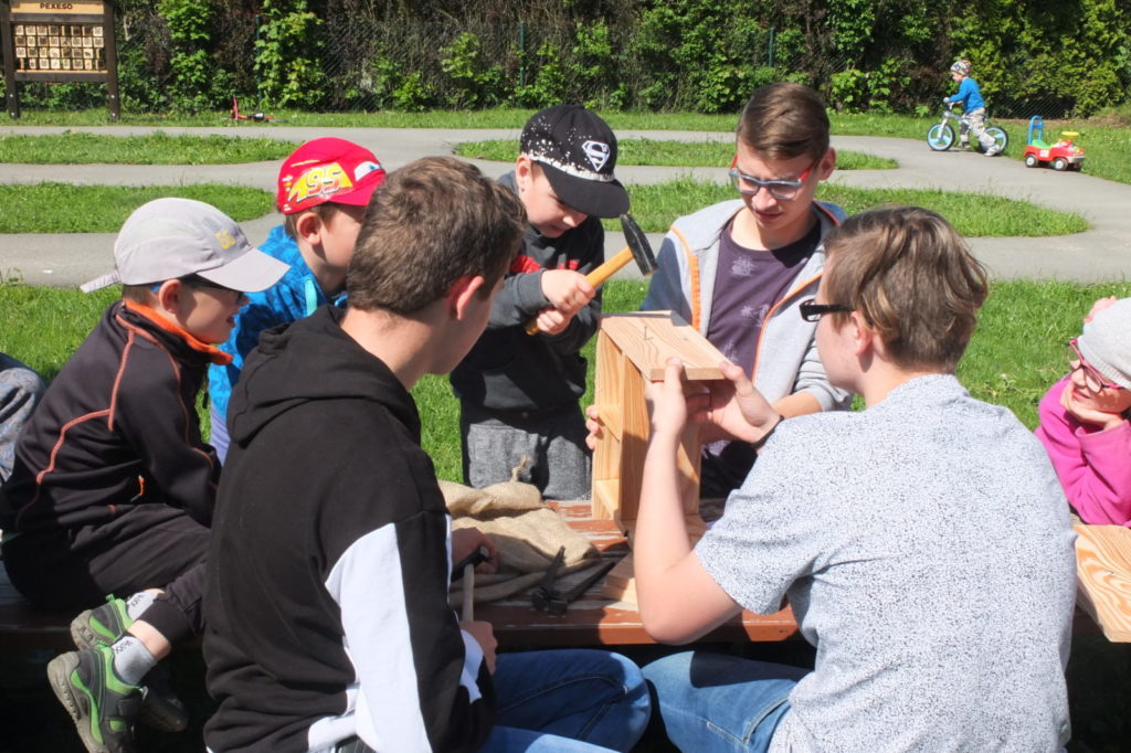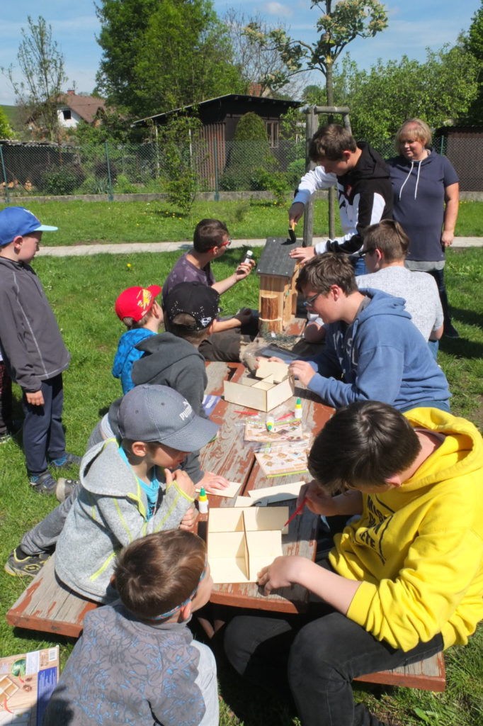 Anotace projektu: Společná aktivita žáků 8. a 9. ročníku základní školy a dětí z Mateřské školy Korálek byla součástí realizace projektu Přírodní úprava zahrady Mateřské školy Korálek v Libchavách. Cílem projektu je přeměna zahrady na „učebnu pod širým nebem“, která se stane nedílnou součástí aktivit školy se zcela novými prvky. Bude vytvořena přírodní zahrada, která bude hravá, obklopená inspirujícím prostředím, jež bude probouzet tvořivou energii, formovat přirozené talenty dětí a posilovat jejich osobnosti. Žáci 8. a 9. ročníku společně s dětmi vyráběli hmyzí domečky z přírodních materiálů. Žáci školy si předem připravili materiál i pomůcky, nastudovali postupy, vedli děti při práci, dbali na bezpečnost, s dětmi vedli diskuzi o hmyzu i o práci se dřevem. Pro děti byla spolupráce se staršími žáky přirozená, respektovali je a zapojily se do aktivit.