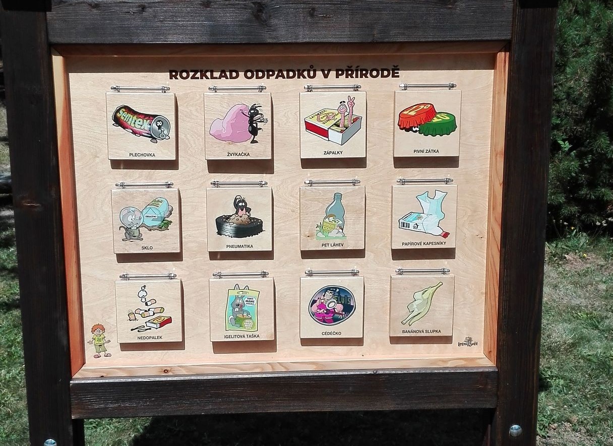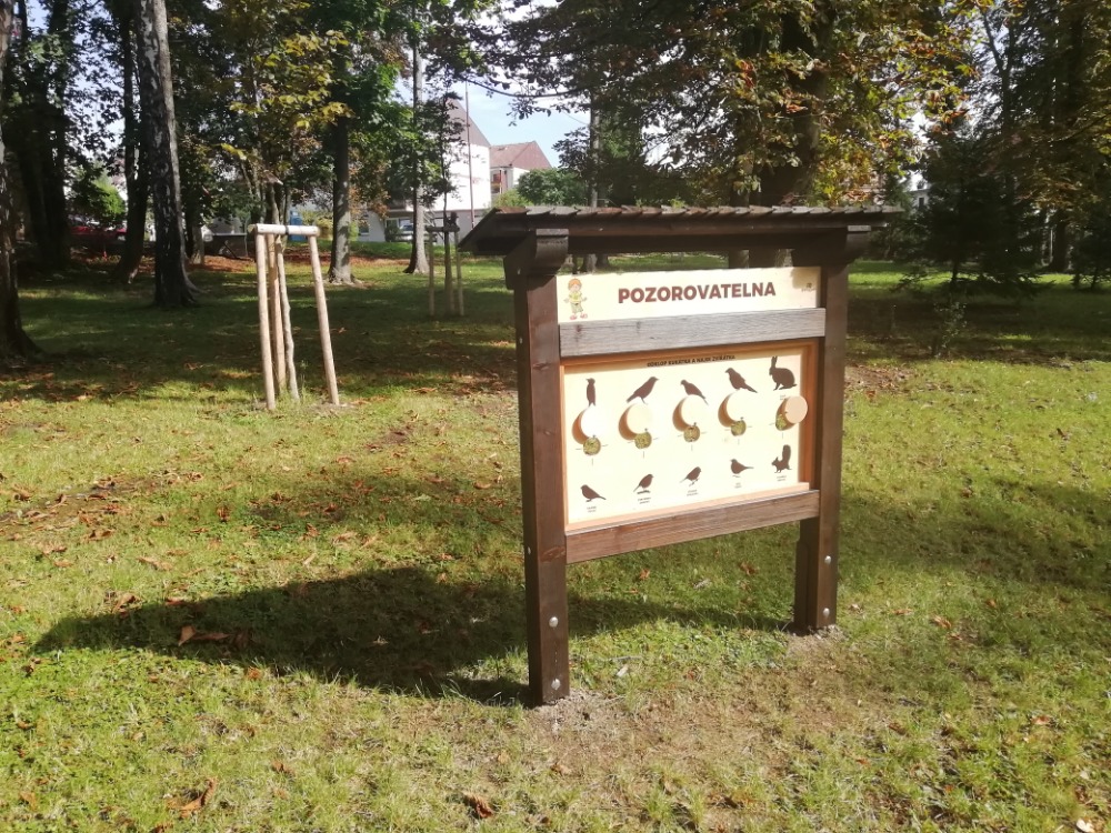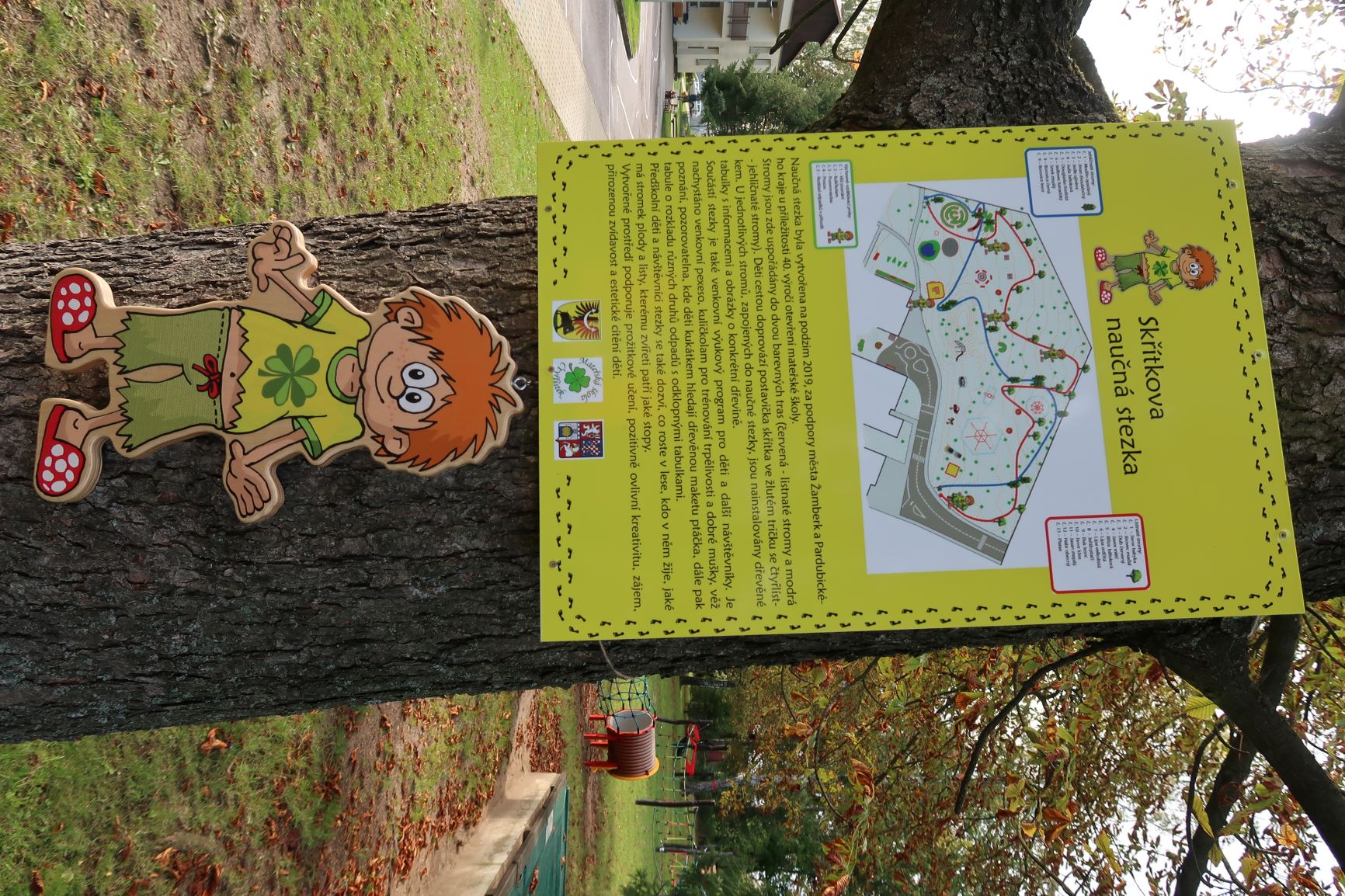 Anotace projektu: Na zahradě Mateřské školy ČTYŘLÍSTEK, Žamberk se uskutečnilo v září 2019 otevření nové naučné stezky. Ta se stala součástí již stávající zahrady v přírodním stylu, která byla vybudována před 5 lety. Vloni na podzim bylo vysázeno 25 ks nových listnatých a jehličnatých dřevin. Předškolní děti pomáhaly při jejich výsadbách, zalévání a udržování. Stromy byly uspořádány do tematické naučné stezky, na které je bude doprovázet postavička skřítka ve žlutém tričku se čtyřlístkem. Stezka je rozdělená do dvou barevných tras, které budou rozdílné v obtížnosti. U jednotlivých stromů, zapojených do naučné stezky, jsou nainstalovány dřevěné tabulky s informacemi a obrázky o konkrétní dřevině. Součástí stezky je také venkovní výukový program pro děti a další návštěvníky. Je nachystáno venkovní pexeso, kuličkolam pro trénování trpělivosti a dobré mušky, věž poznání, pozorovatelna, kde děti kukátkem hledají dřevěnou maketu ptáčka, dále pak tabule o rozkladu různých druhů odpadů s odklopnými tabulkami. Informační tabule s mapkou a popisem prvků seznámí návštěvníky s trasou a postupem plnění jednotlivých úkolů. V mateřské škole víme, jak zaujmout, jak dostat přírodu do zahrady a děti do přírody. Velký význam zde hraje prožitek a aktivní přístup dětí k jednoduchým úkonům při ošetřování, zalévání, úklidu a poté při plnění úkolů na venkovním výukovém programu. Záměrem je pamatovat na sociální interakce dětí a vybízet je ke komunikaci a sdílení. Cílem je vytvořit bezpečné prostředí pro setkávání, pohyb a vzdělávání dětí a hrou je nadchnout pro přírodu a zvýšit povědomí o ní. Celá školní zahrada má dětem nabídnout řadu nových podnětů, které pozitivně ovlivní smyslové vnímání (např.: barva květů – oči, vůně – nos, struktura povrchu – hmat, ovoce v zahradě – chuť, zpěv ptactva – sluch). Předškolní děti a návštěvníci stezky se také dozví, co roste v lese, kdo v něm žije, jaké má stromek plody a listy, kterému zvířeti patří stopy. Vytvořené prostředí pozitivně ovlivní kreativitu, zájem, přirozenou zvídavost a estetické cítění dětí. Realizace záměru byla provedena za podpory Pardubického kraje a města Žamberk a zásadním způsobem obohatí a prohloubí stávající výukový a výchovný koncept v mateřské škole.