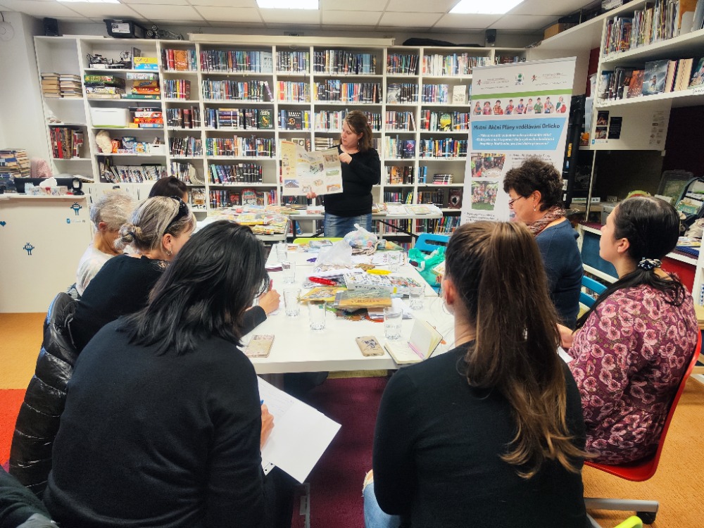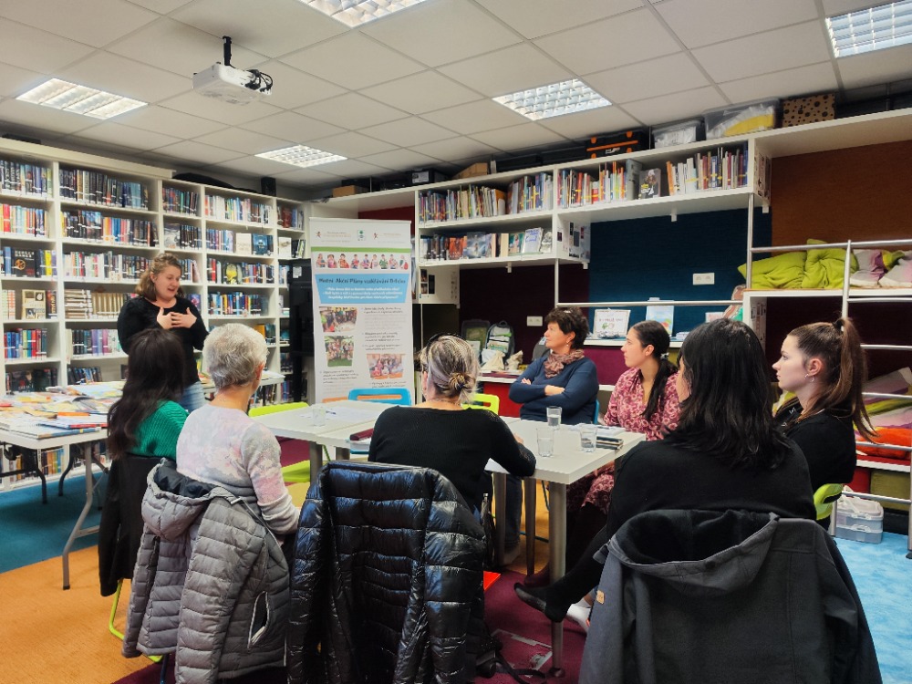 Účastníci setkání se seznámili s krásnými a útulnými prostory městské knihovny a byli seznámeni s mnoha užitečnými nápady nejen na jednotlivé knižní tituly, které se pro práci s dětmi v MŠ skutečně hodí, ale především se mohli inspirovat mnoha tipy na to, jak s jednotlivými knížkami pracovat, a jak je propojit se spoustou aktivit.