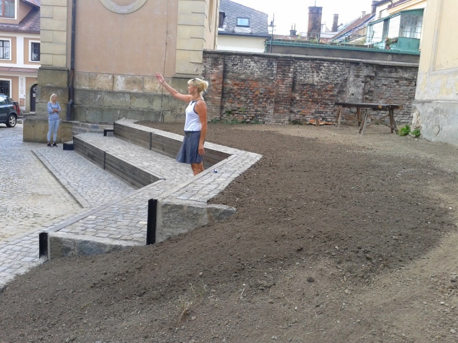 Cíl aktivity: aktivní zapojení žáků, rodičů, zaměstnanců školy a zaměstnavatelů do procesu úpravy veřejného prostoru. Nejprve byl formou studentsko-rodičovsko-pedagogické brigády v létě obnoven stávající travní porost. Na podzim žáci s profesionálním zahradníkem prostor osázeli skalníkem, květinami a podél zdi vsazeny břečťany. V listopadu pak žáci s pedagogem a zámečníkem nainstalovali originálně vyrobené lavičky a vznikla tak příjemná odpočinková zóna, kterou mohou využívat nejen studenti ke skupinové výuce v přírodě či k samostudiu, tak občané města k relaxaci.