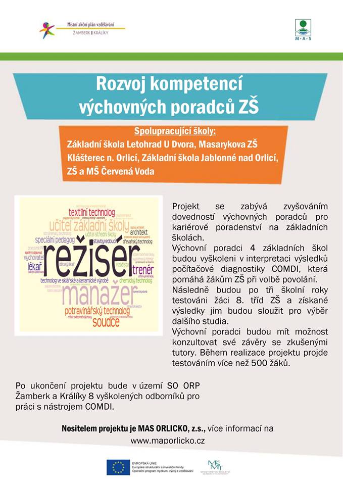 Dne 12. září 2018 proběhlo na Základní škole U Dvora v Letohradě úvodní školení k projektu Rozvoj kompetencí výchovných poradců ZŠ. Toto první školení bylo určeno výchovným poradcům zapojených škol, tutorům a testerům. V rámci tohoto školení se zúčastnění dozvěděli informace k diagnostickému nástroji COMDI, se kterým budou v rámci projektu pracovat. Na tuto úvodní část školení naváže 2. část, při které se bude pracovat s náslechovou skupinou.