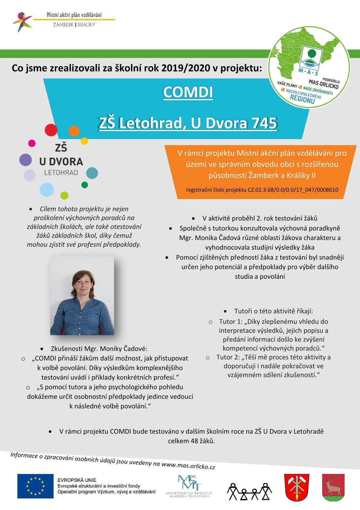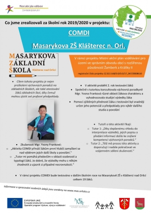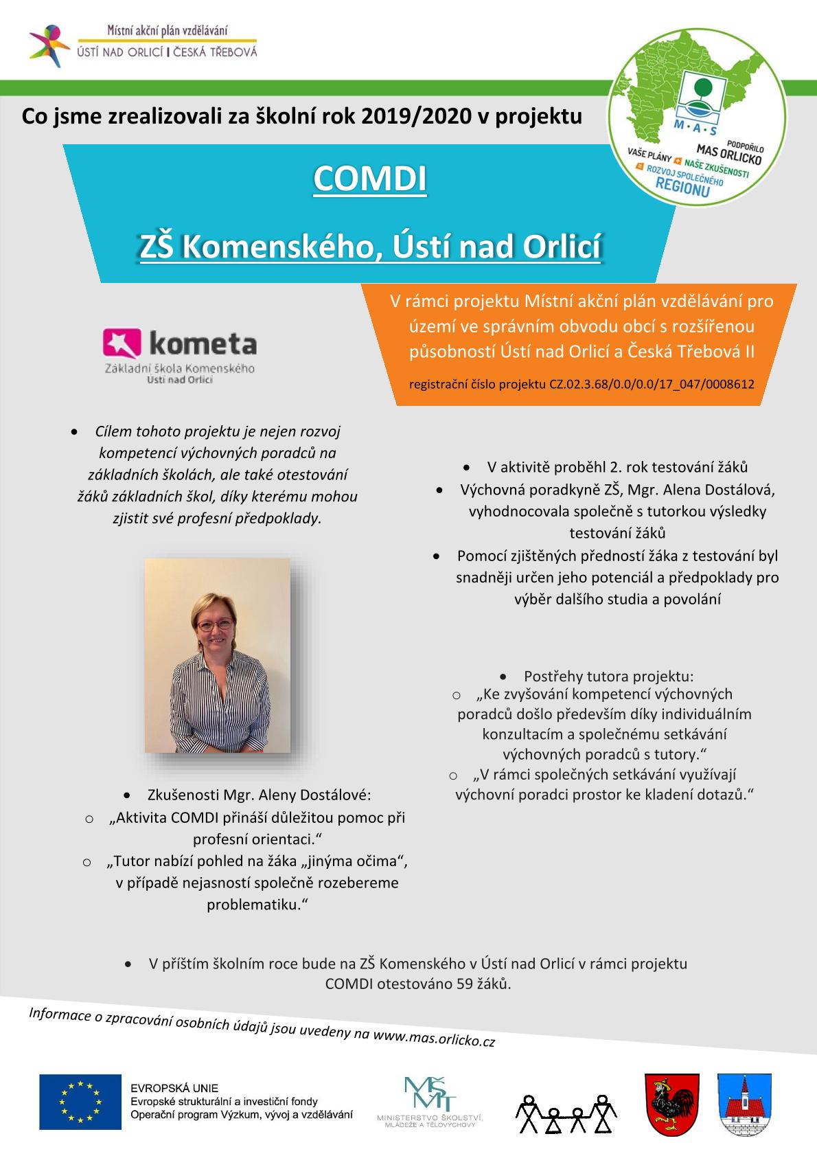 12. června 2019 proběhlo setkání zapojených škol v projektu COMDI v rámci Orlickoústecka a Českotřebovska. Toto setkání proběhlo na Základní škole Ústí nad Orlicí, Komenského 11 a bylo zaměřeno na sdílení zkušeností z průběhu prvního roku testování.