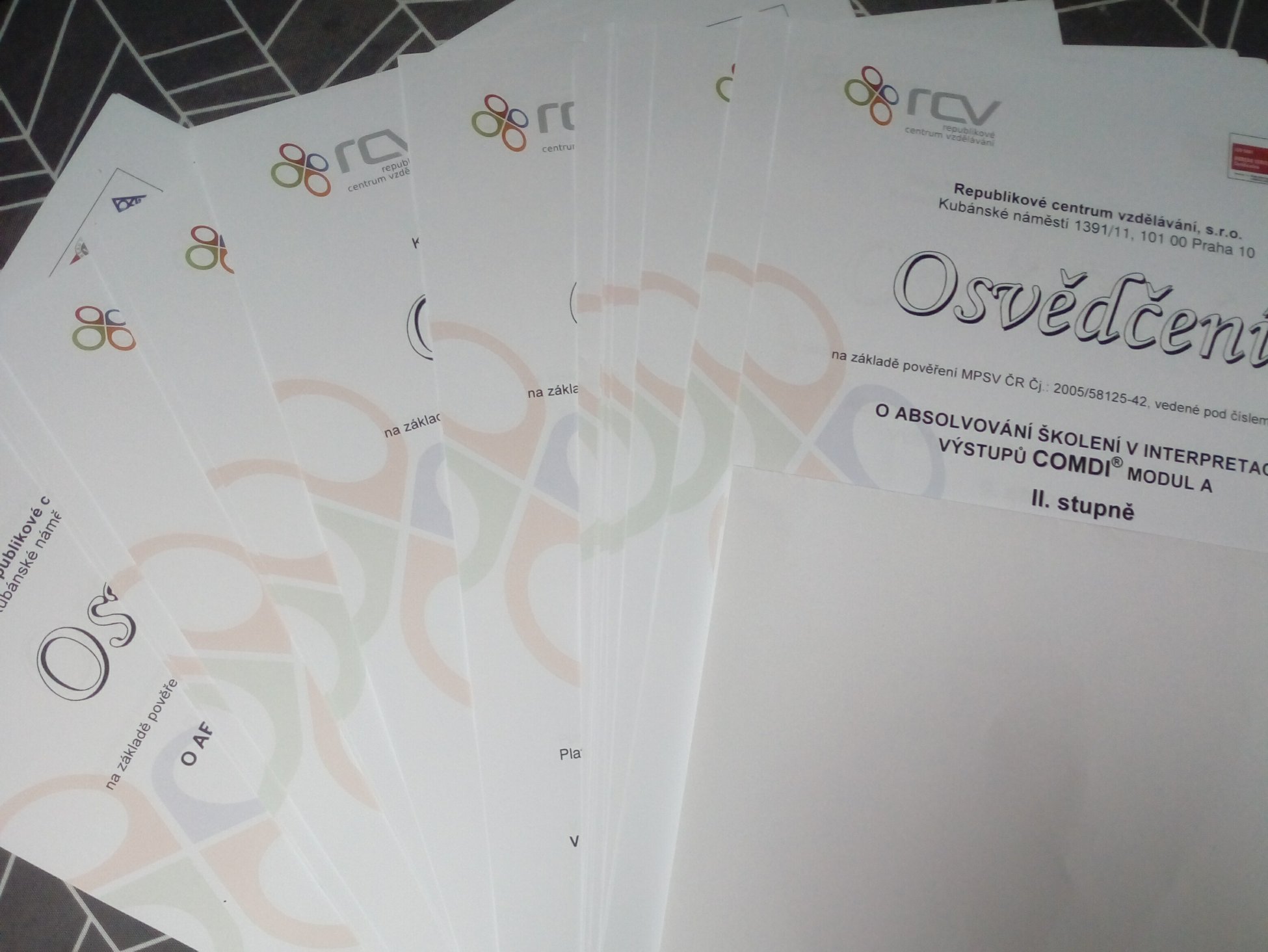 2. listopadu 2018 bylo dokončeno školení Interpretů 2. stupně v projektu Zvyšování kompetencí výchovných poradců ZŠ. Všichni zúčastnění získali certifikáty a projekt bude pokračovat testy profesní diagnostiky pro žáky osmých tříd v sedmi spolupracujících ZŠ. Věříme, že jim výsledky pomohou ke správnému výběru střední školy nebo učiliště.