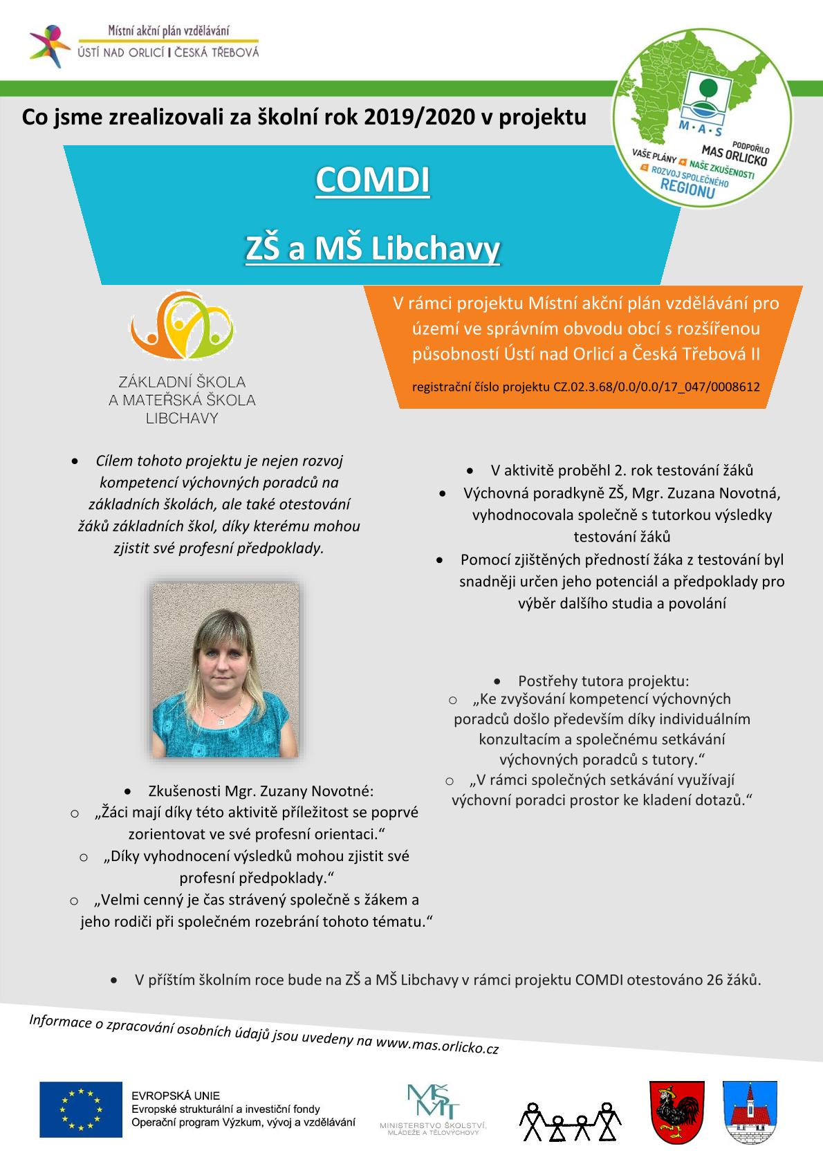 2. června 2020 proběhlo na Obecním úřadu v Libchavách setkání zapojených škol v projektu COMDI v rámci Orlickoústecka a Českotřebovska. Cílem schůzky bylo sdílení zkušeností z průběhu testování ve školním roce 2019/2020 a rovněž sdílení zkušeností s distanční formou testování a výuky obecně (vzhledem k vyhlášenému nouzovému stavu v ČR v době trvání epidemie koronaviru COVID-19).