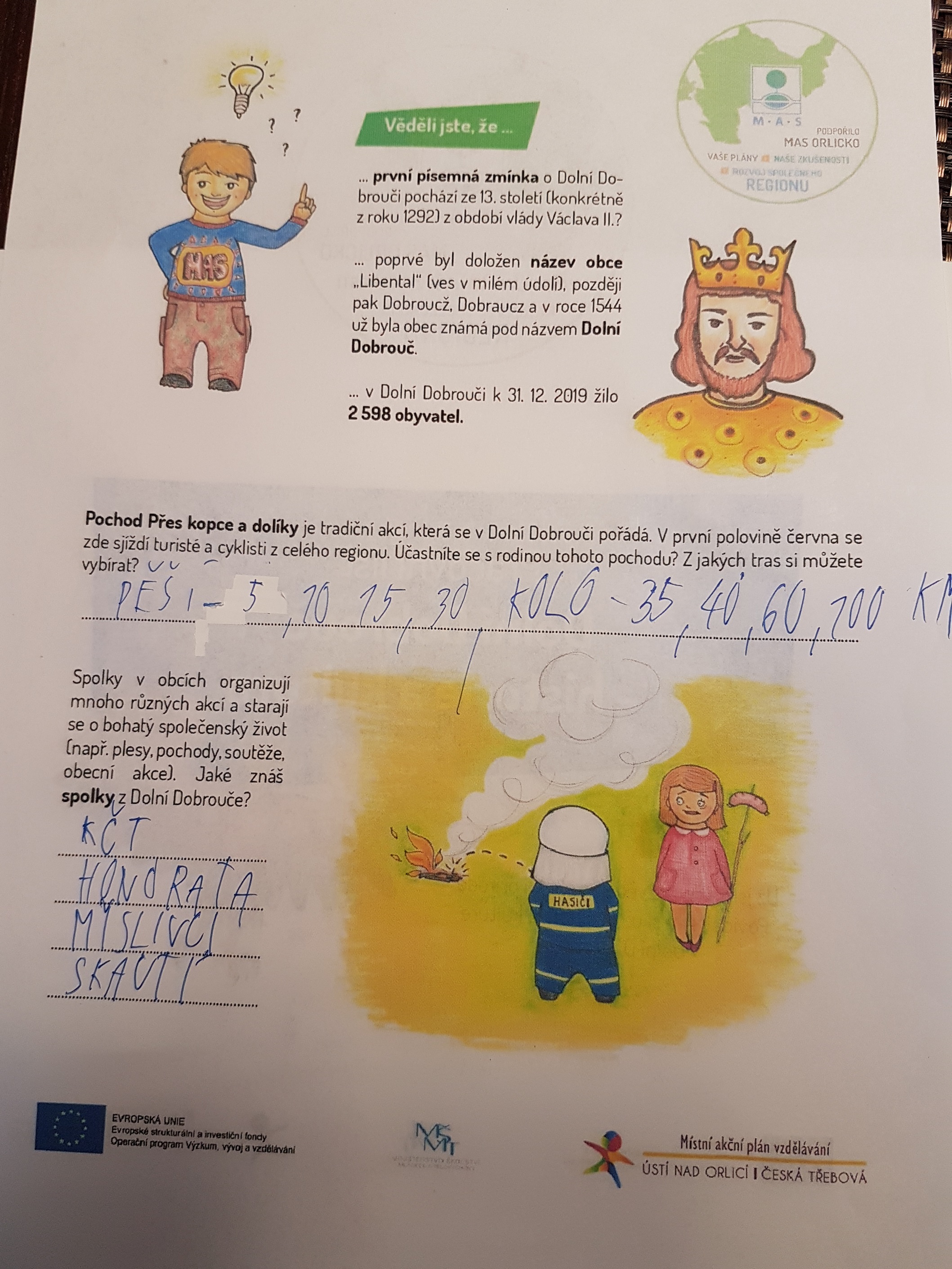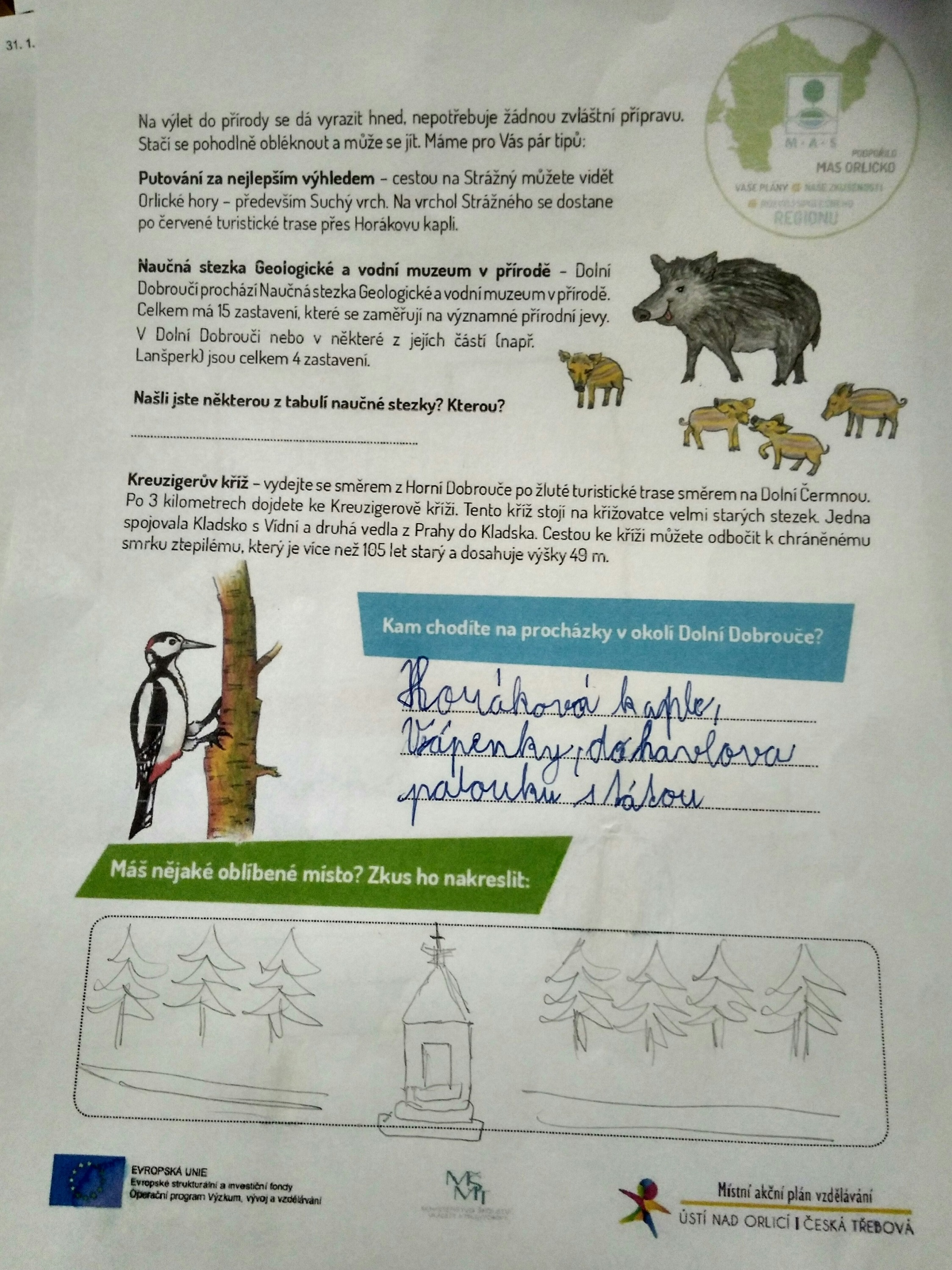 Máme tu pro Vás druhou ukázku z ověřování témat Příroda a Historie a kultura obce pro žáčky 1. stupně ?.