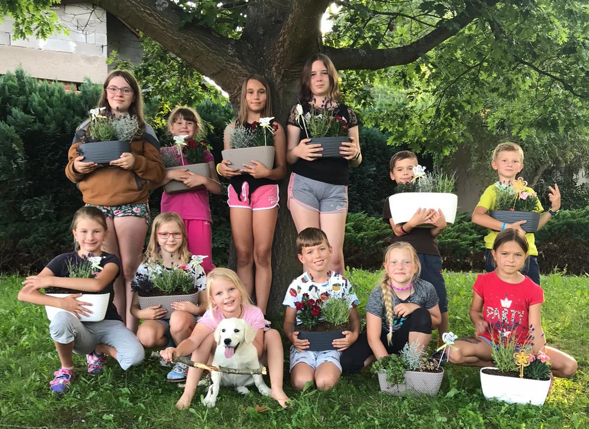 Děti se nejprve vzájemně poznaly při seznamovacích hrách v parku Javorka a pak už se věnovaly bohatému programu, který byl pro ně připraven: vyrobily si zápich do květináče, seznámily se s péčí o zahradu, dozvěděly se informace o pěstování sukulentů a jejich přesazování a zkusily si sestavit budku pro ptáčky.