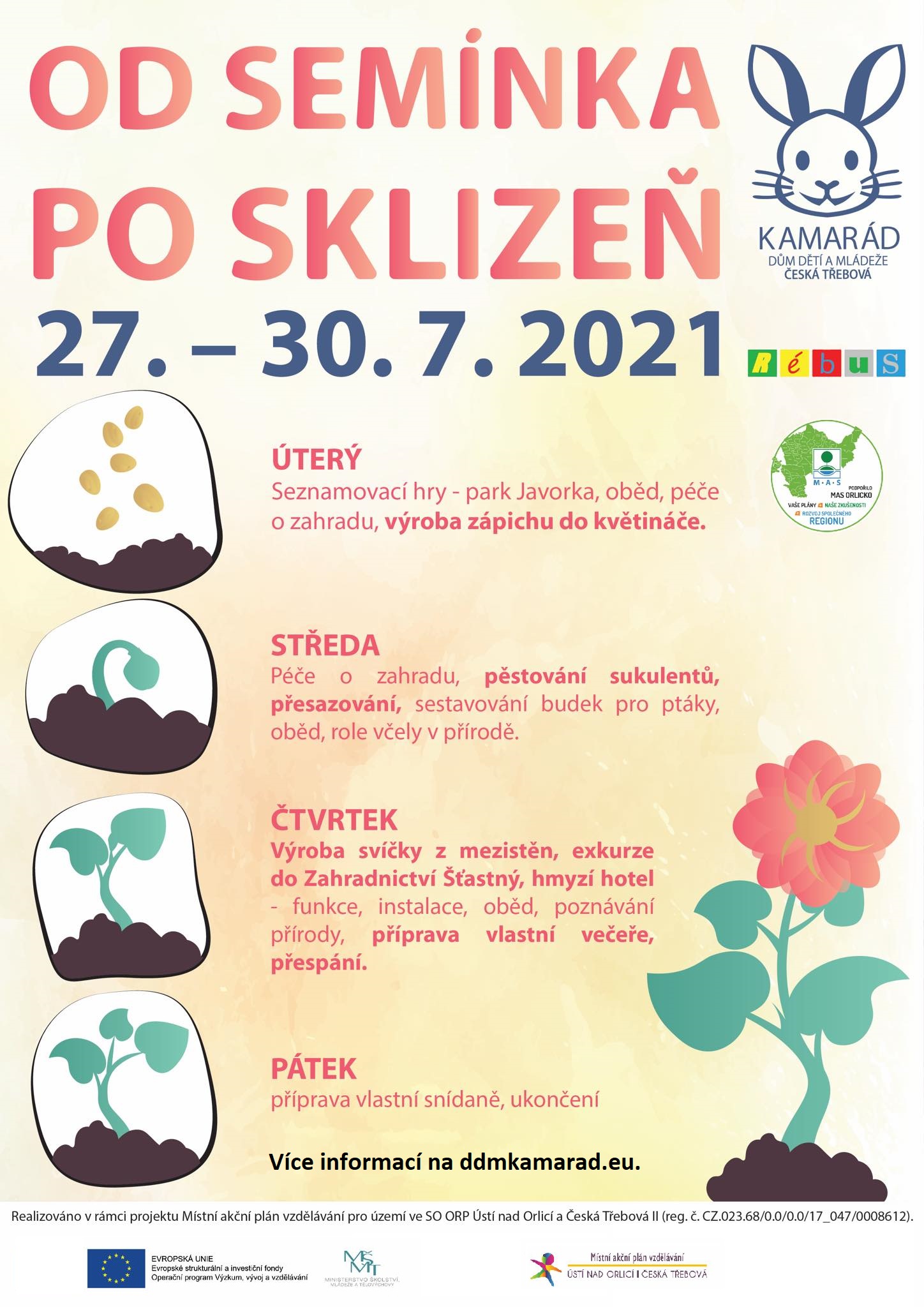 Cílem projektu je podpořit využití zahrady u Klubu Rébusu v České Třebové, který je součástí DDM Kamarád Česká Třebová k rozvoji sociálních a praktických dovedností a schopností u dětí a žáků do 15 let.