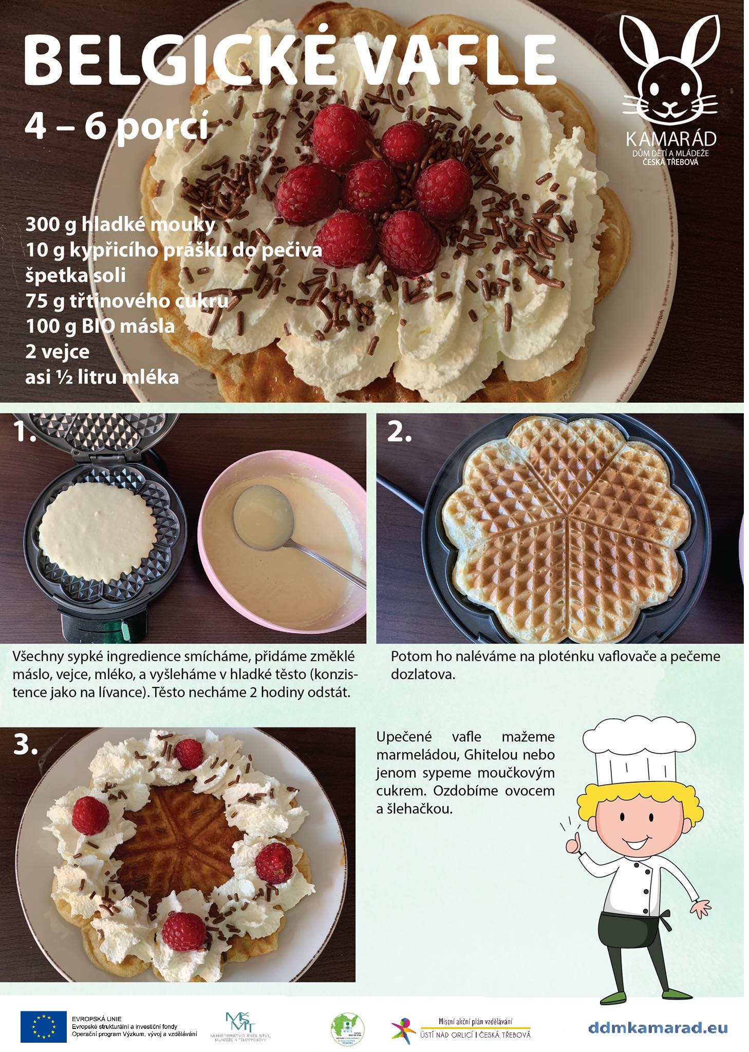 Sladkost, kterou si mohou připravit jako svačinku nebo snídani. Někteří mohou tento pokrm znát jako GOFRI. Tuto lahodnou sladkost si lze připravit v odlehčené fitness formě, nebo jako pořádnou kalorickou bombu. Na zdobení využijeme i bylinky a plody z naší komunitní zahrady-hlavně meduňku, jahody a maliny.
