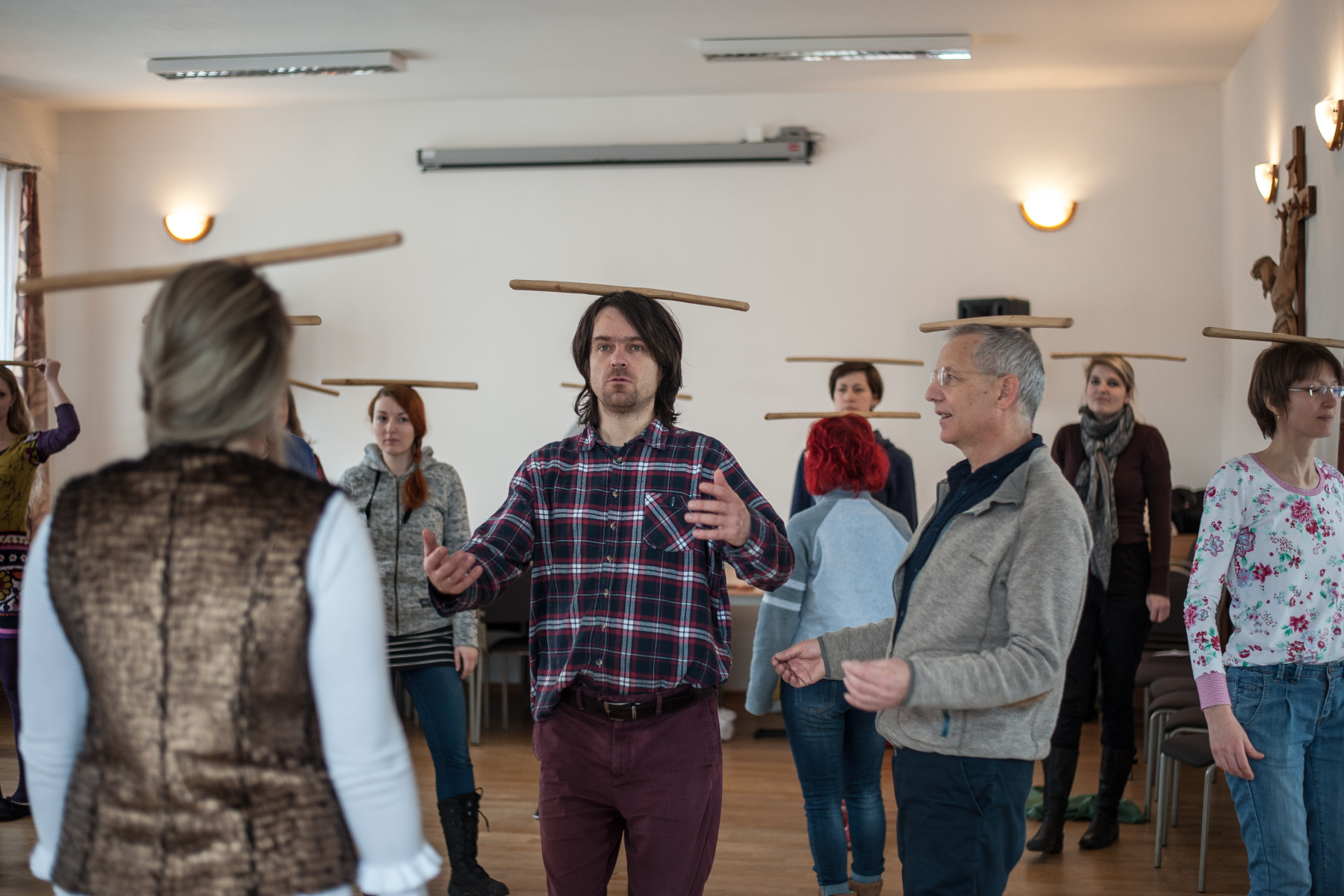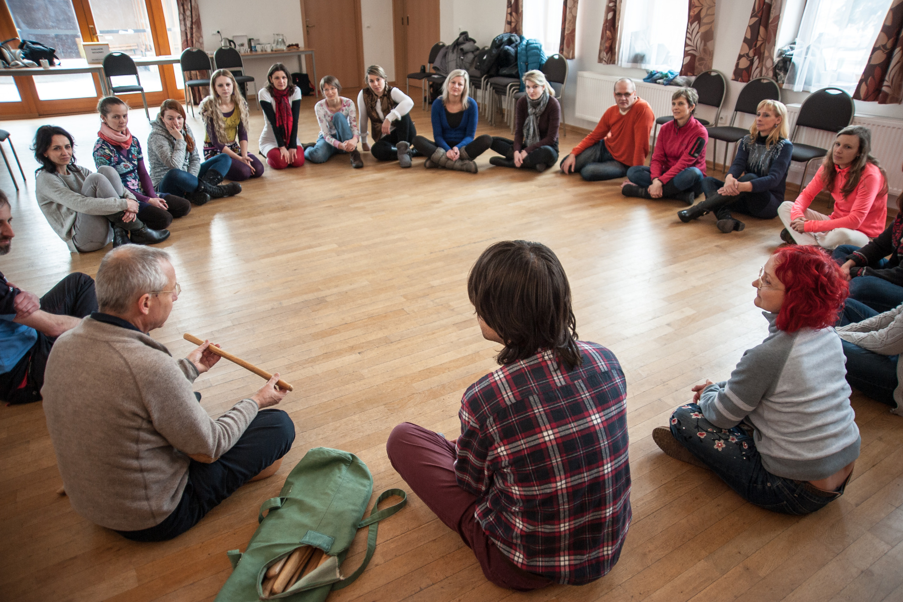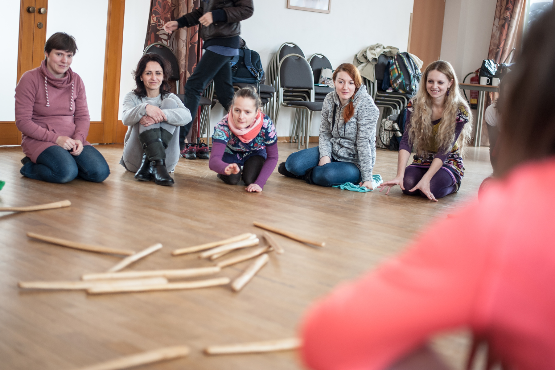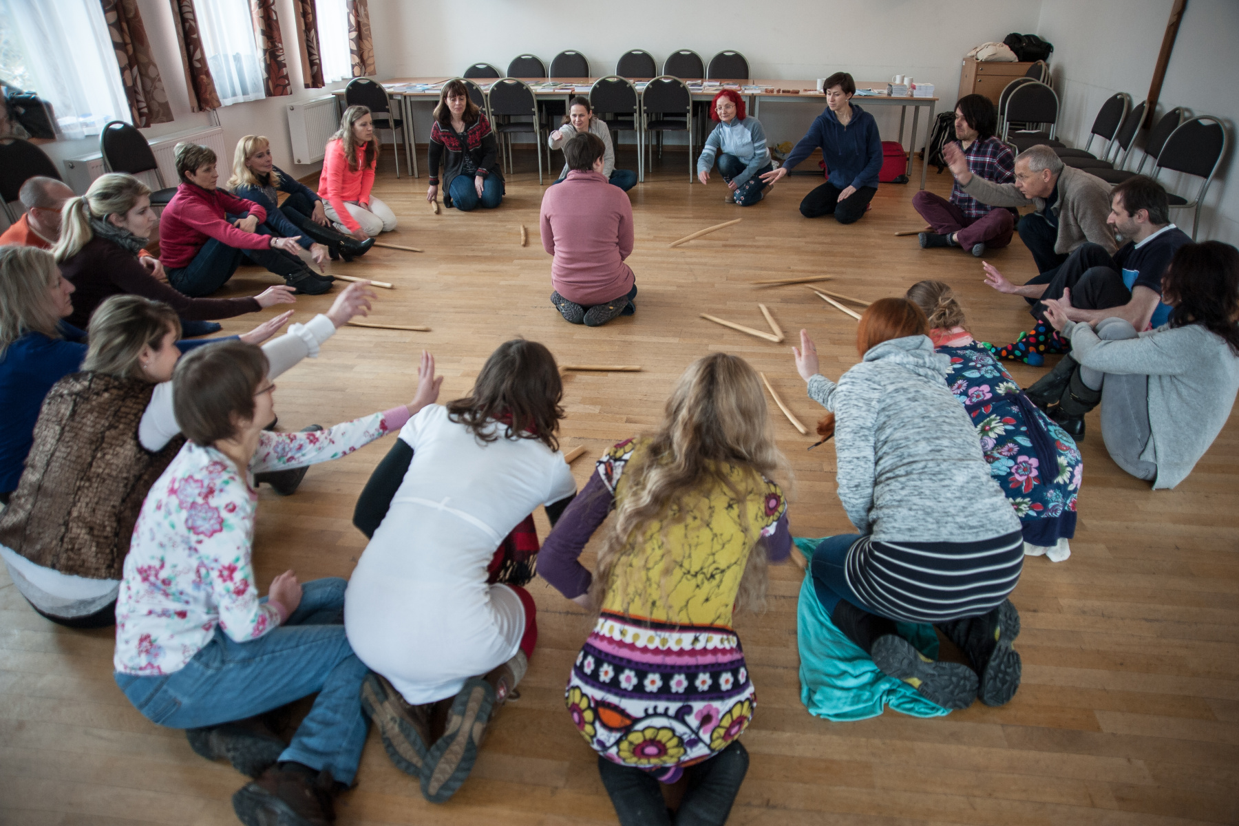Hra na mravence pospíchajícího k uvolněné židli, (ne)bezpečná hra „nízkou holí“, hudba dřeva a chytajících rukou – to je malá ochutnávka toho, co měli možnost účastníci semináře prožít pod vedením německého pedagoga Thomase Pedroliho.