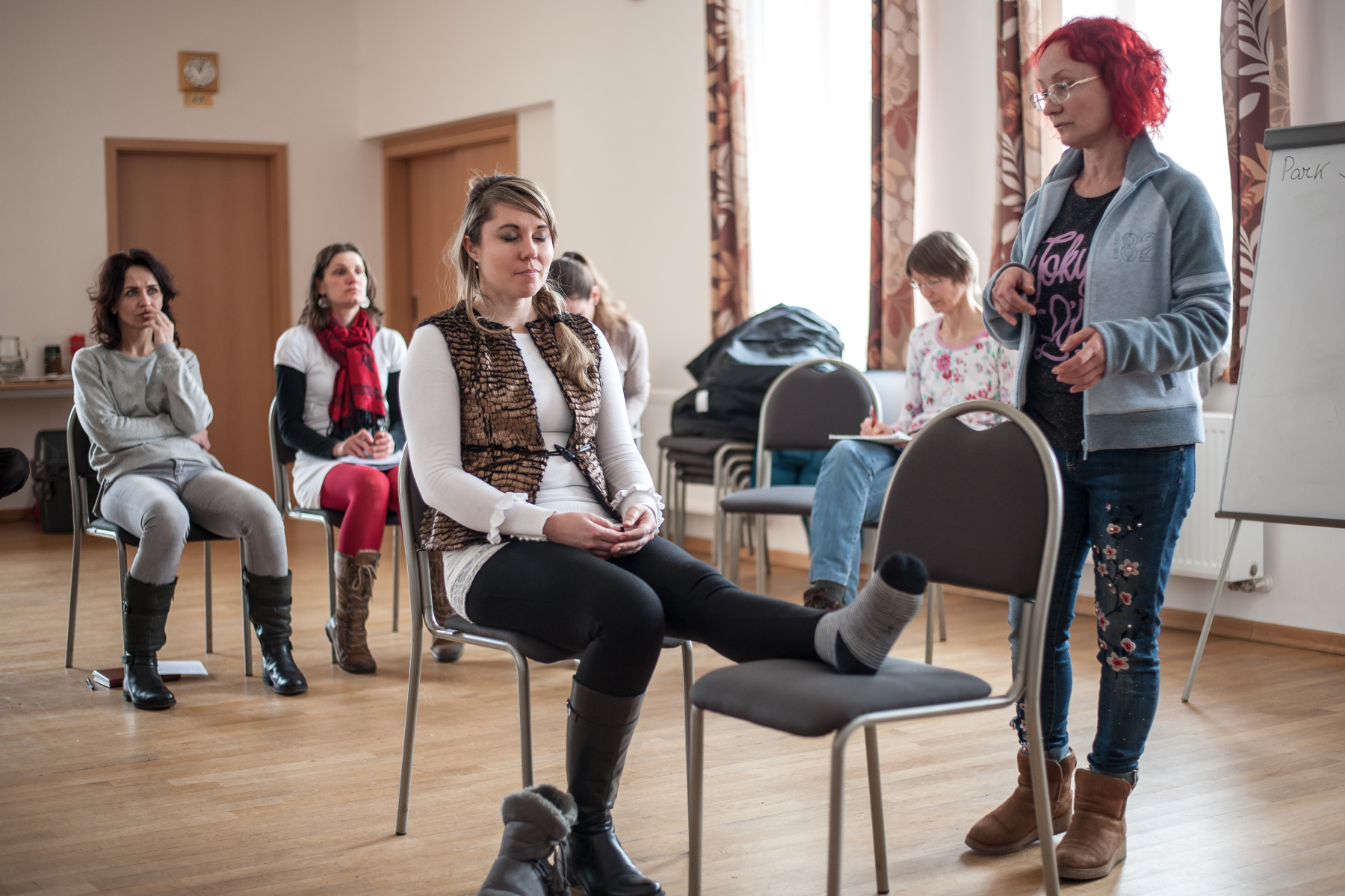 Ve druhé části semináře v D-Centru v Dolní Dobrouči, pod vedením ukrajinské doktorky integrativní medicíny Eleny Bogatyrenko, se zúčastnění naučili jak obnovovat a uchovávat své zdraví pomocí jednoduché metody terapie směry, spirální gymnastiky či twist terapie.