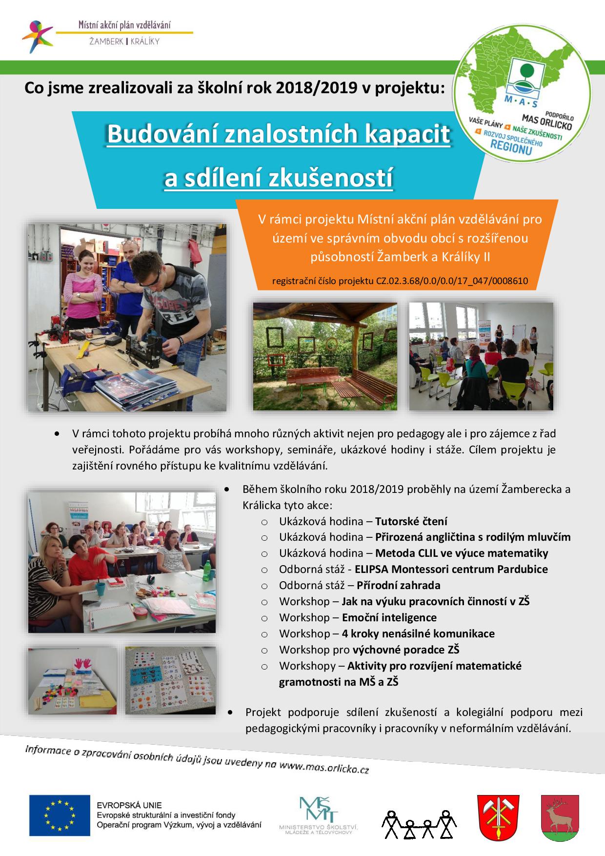 Připravili jsme pro vás shrnutí aktivit a akcí, které jsme pro vás zrealizovali za školní rok 2018/2019. Můžete si prohlédnout, jaké projekty realizujeme na území Žamberecka a Králicka a jaké projekty na území Orlickoústecka a Českotřebovska. Děkujeme vám za spolupráci a těšíme se na další školní rok s vámi!