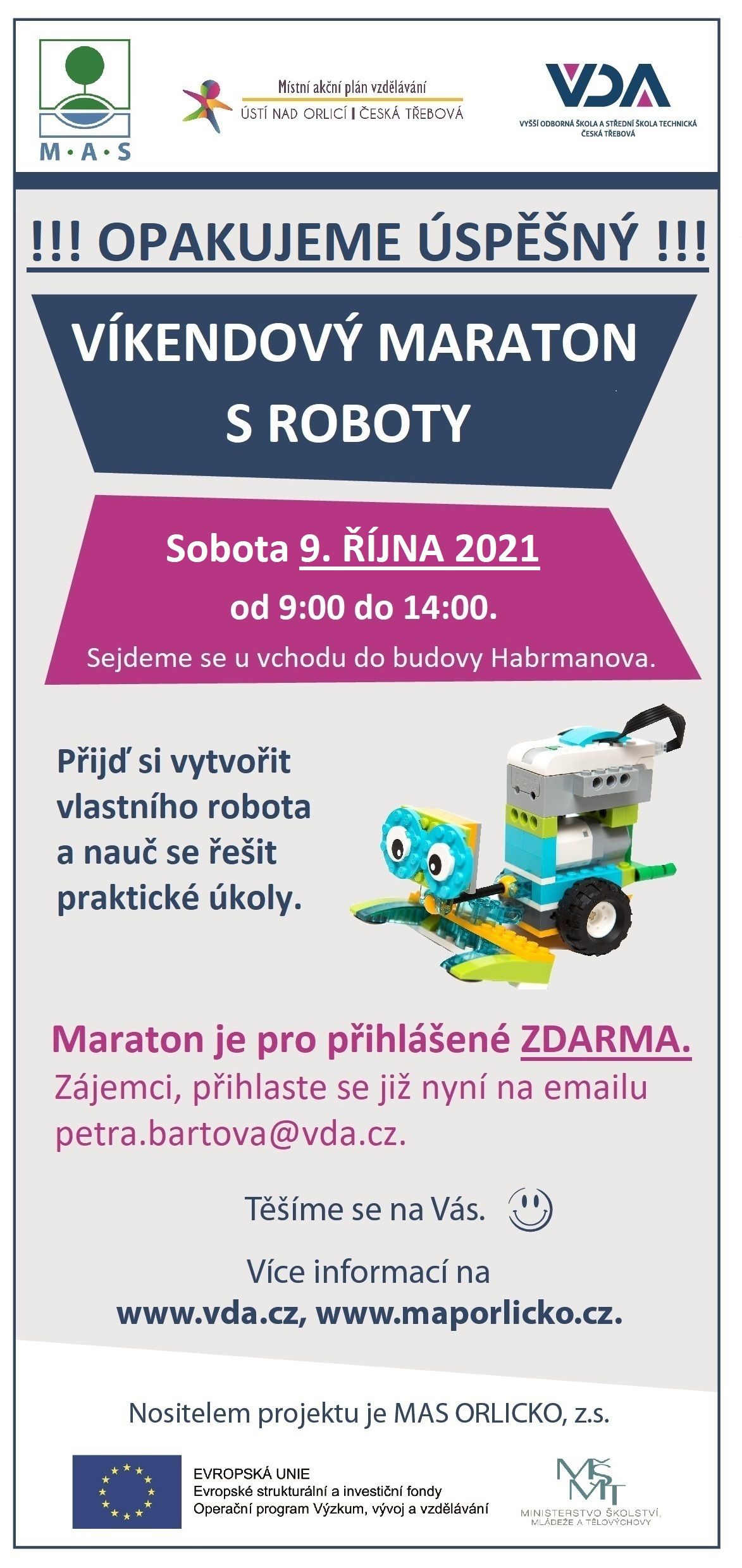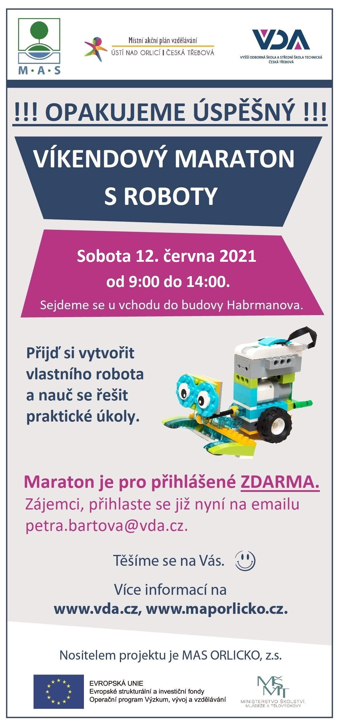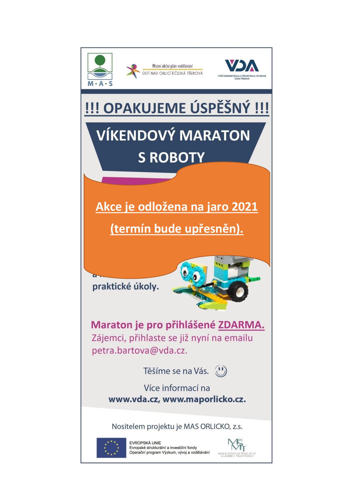 Na sobotu 12. června 2021 byla posunuta realizace víkendového maratonu s roboty, který se měl původně uskutečnit na konci listopadu 2020.