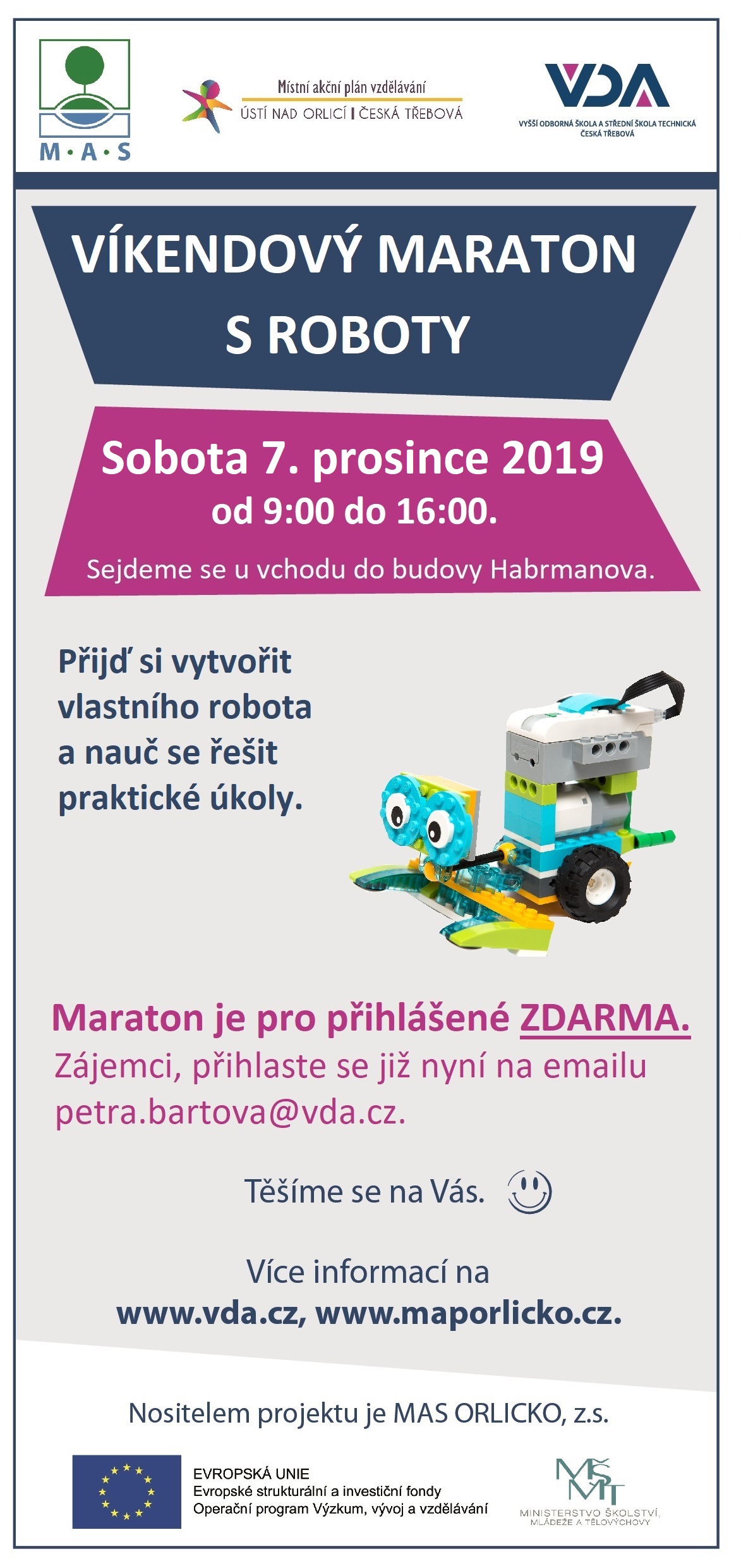 7. prosince proběhl na Vyšší odborné škole a Střední škole technické v České Třebové Víkendový maraton s roboty. Děti a žáci si tak měli možnost vytvořit vlastního robota a naučili se řešit praktické úkoly.