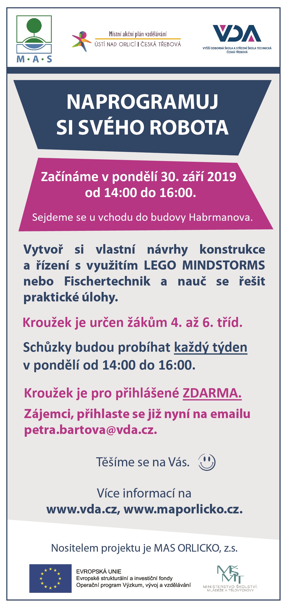 30. září 2019 byl zahájen na VOŠ a SŠT Česká Třebová volnočasový kroužek Naprogramuj si svého robota. Kroužek probíhá každé pondělí od 14:00 do 16:00 a je určen pro žáky 4. až 6. tříd.