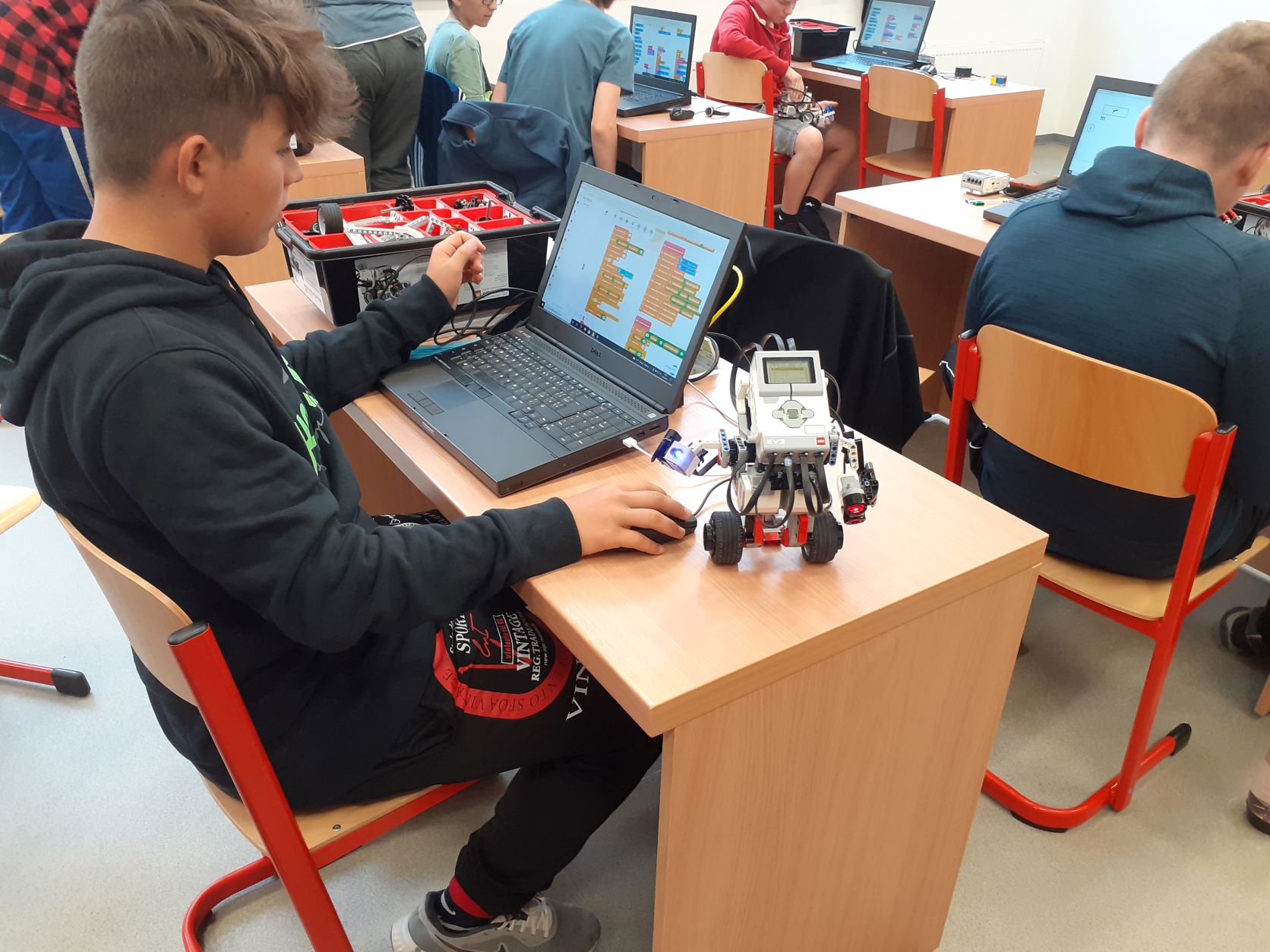 Současná situace spojená s protiepidemiologickými opatřeními bohužel nedovoluje umožnit pokračování realizace volnočasového kroužku „Naprogramuj si svého robota“, který tak byl přerušen.